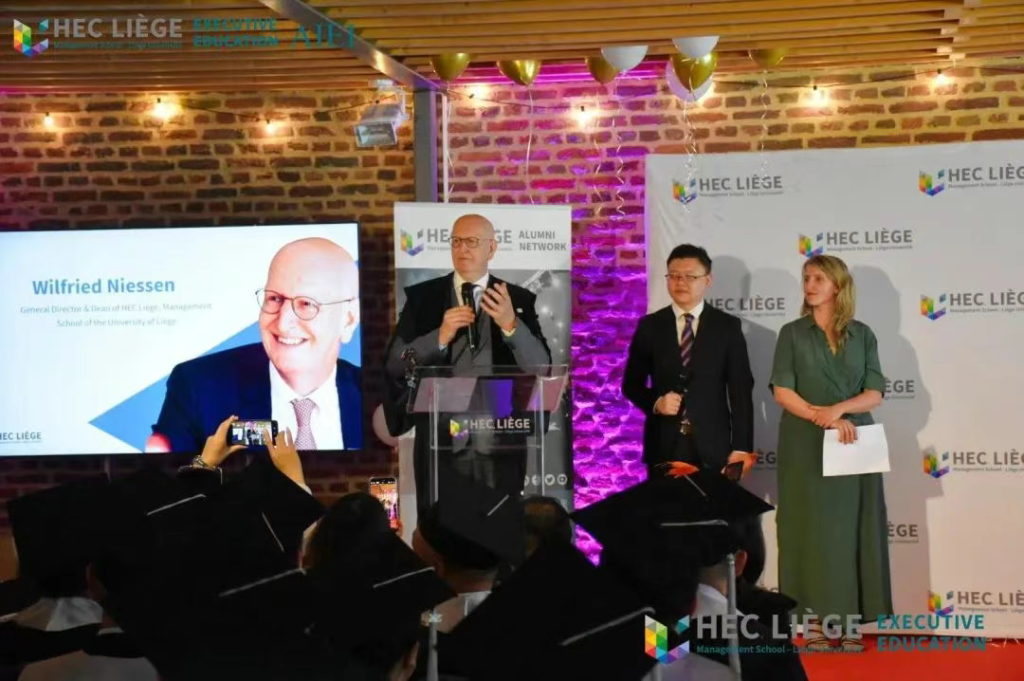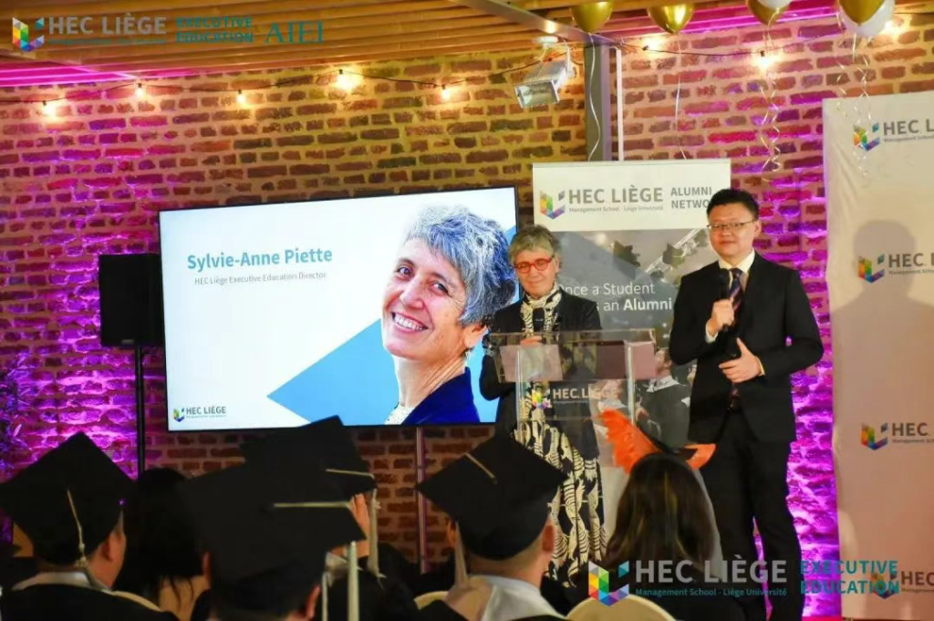 对于毕业典礼这样一个具有里程碑意义的时刻,如同HEC列日高商在职教育主任西尔维·安妮·皮耶特女士所言,我们不仅是在颁发学位证书,更是在庆祝学子们的成长、勇气和获得的荣耀。她表示:“很高兴我们能够陪伴大家度过这段求知旅程,我们非常骄傲地迎来了第一批EDBA项目的毕业生。我们非常支持你们学习的雄心,并助力各位在知识进阶中成长蜕变。偶尔我们会给你们压力,你们努力工作、勤奋思考,也许曾有那么一两次怀疑过人生选择,但此刻请环顾四周——这份成就的光芒, 正是对你们所有努力的最佳见证。现在,请勇敢前行,尽情欢笑,永远保持学习。请坚信自己的能力,我们始终是你们坚实的后盾。衷心祝贺,并祝愿你们新的征程一切顺遂。”
